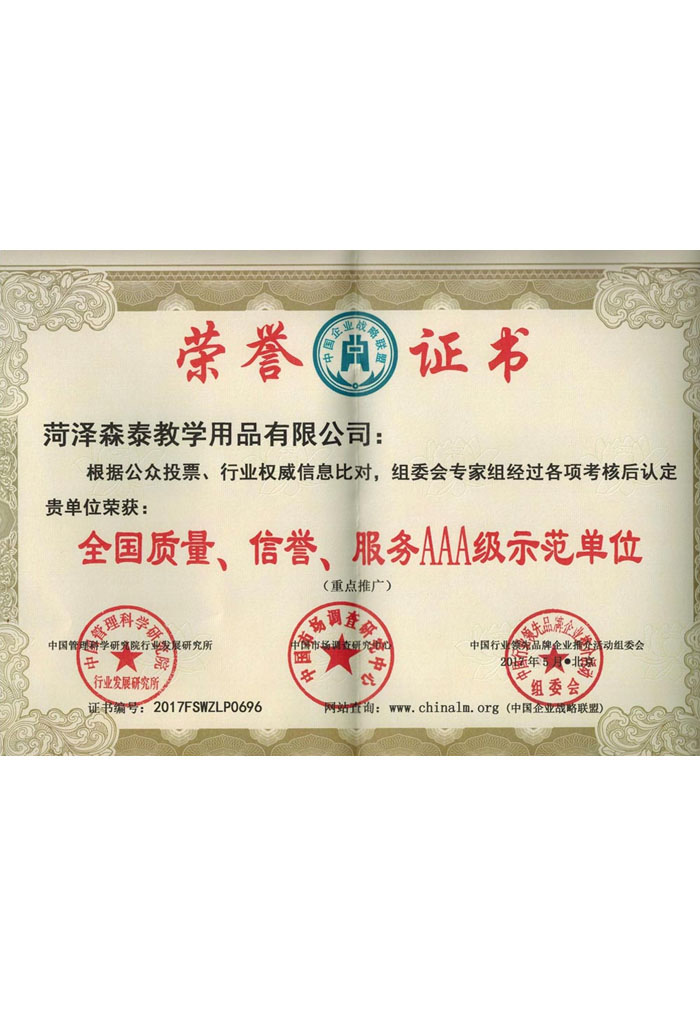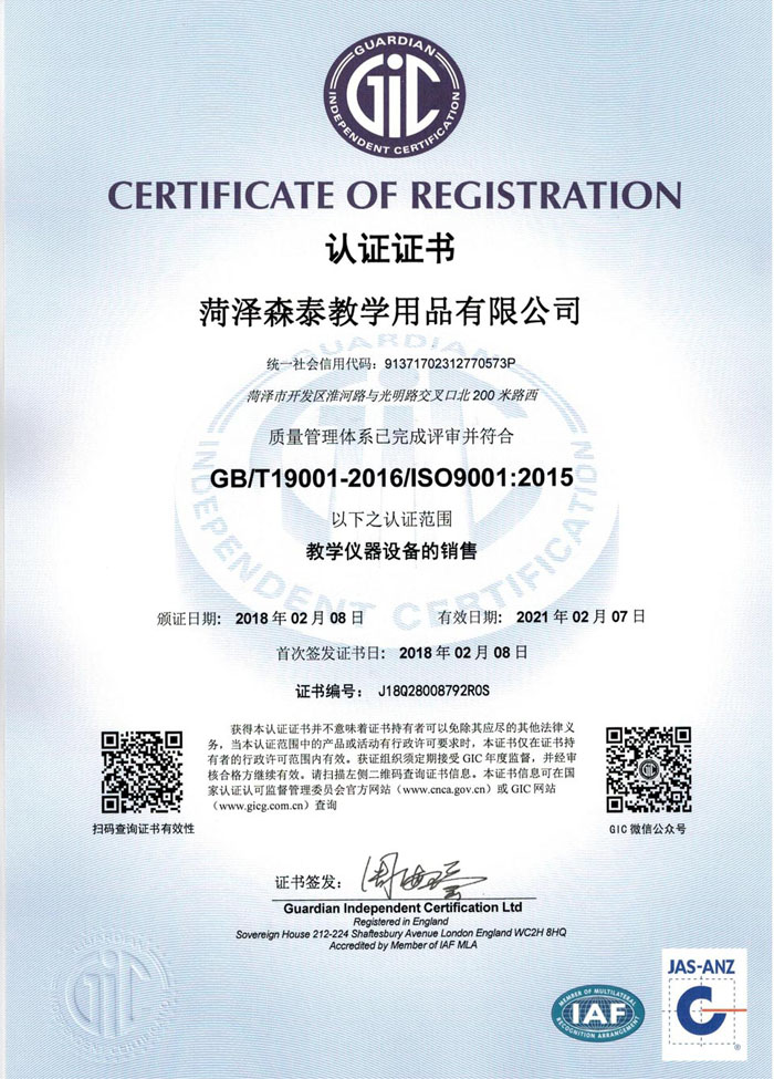 菏澤森泰教學用品有限公司地址位于中國牡丹之鄉山東-菏澤,公司成立于2008年,是菏澤市較早進入教學儀器生產、研發、倉儲、銷售為一體的專業化公司。主要生產銷售:小學數學、小學科學、初高中學物理、化學、生物、地理、數學實驗室成套儀器設備,小學勞技器材,音樂、體育、美術器材等。公司是中國AAA級重質量、重合同、守信用企業。